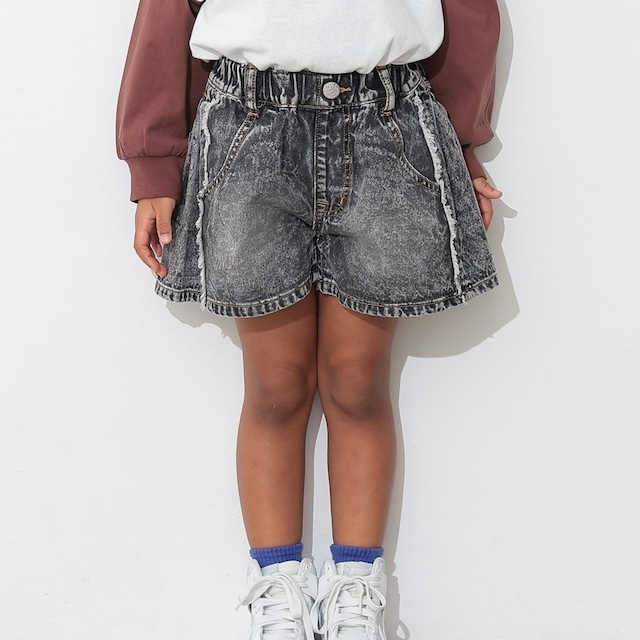 ラフに穿けて、おしゃれ感もばっちり、リメイク風デニムキュロット ・サイドプリーツで広がるシルエットがポイント。 ・ウォッシュ加工とフリンジデザインが本格的でかっこいい。 ・通学などデイリーに使えるおすすめアイテム。 ・Jrサイズ(150-160)も展開中。姉妹のお揃いにもおすすめ。 ・モデル 身長:110cm/着用サイズ:110cm 素材 本体:綿 100% 90-140cm ¥3190 150cm ¥3960