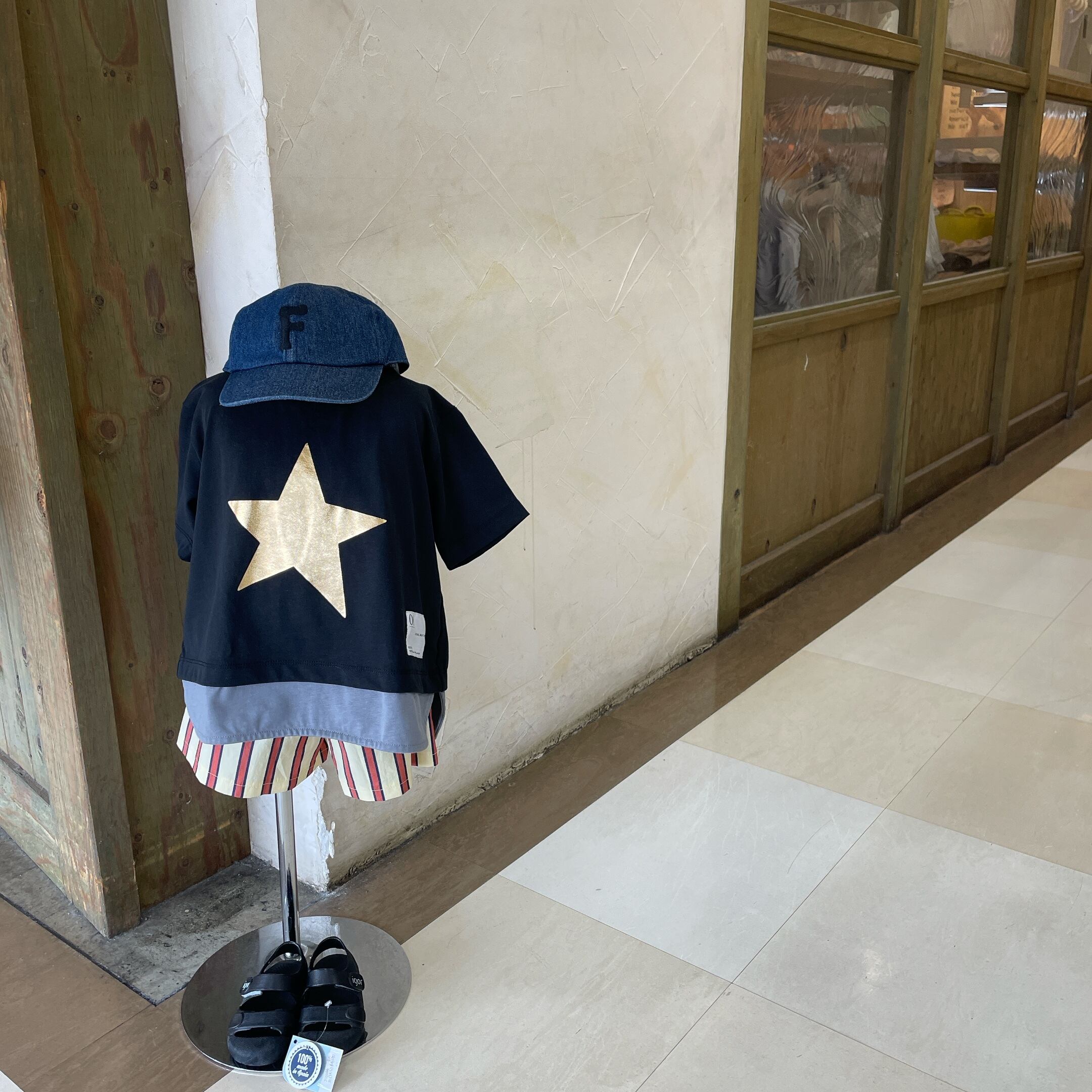 黒にグレーのレイヤードとゴールドスターがオシャレ!