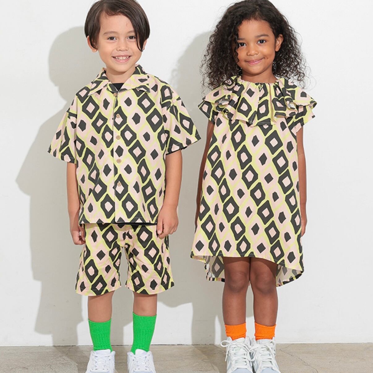 別品番の同じ柄のトップスやボトムと、 Link Coordinateが楽しめる。