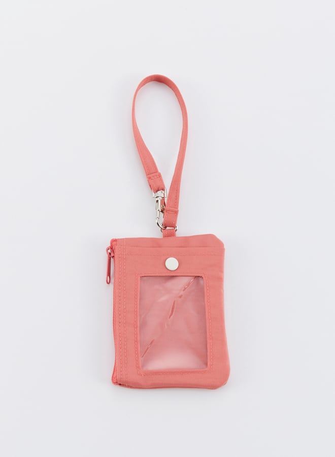 ICカードを収納可能なクリアポケットには、落としにくいスナップボタン付き。