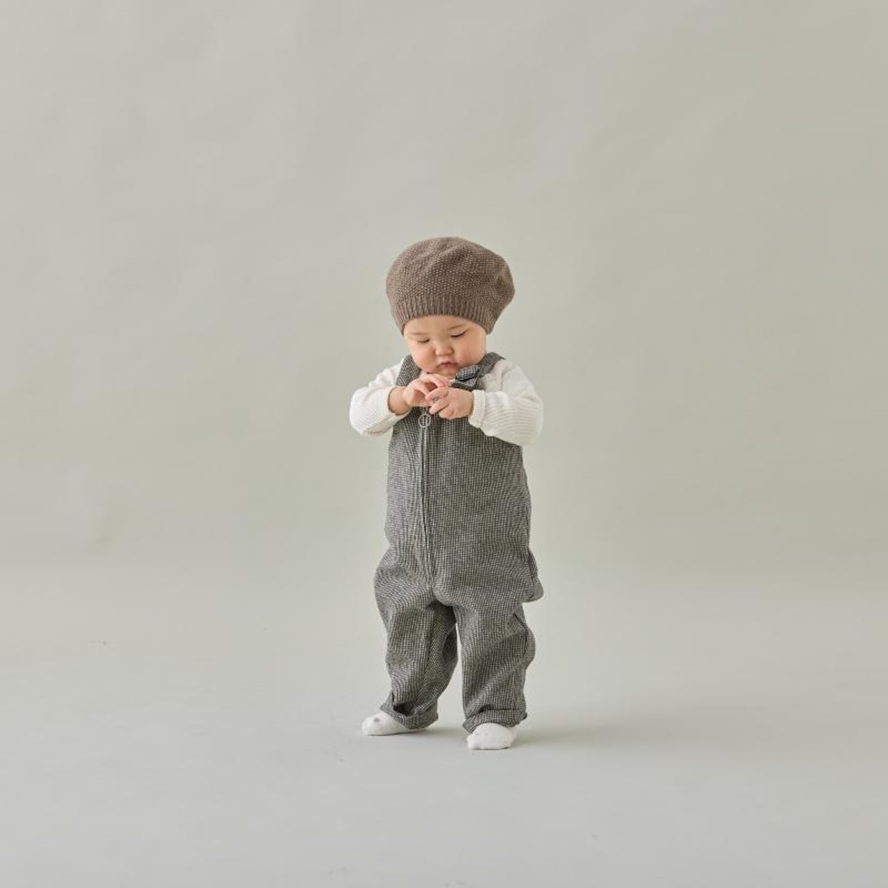 MOUN TEN.ではおなじみのサロペットを、ベビーサイズに落とし込み、