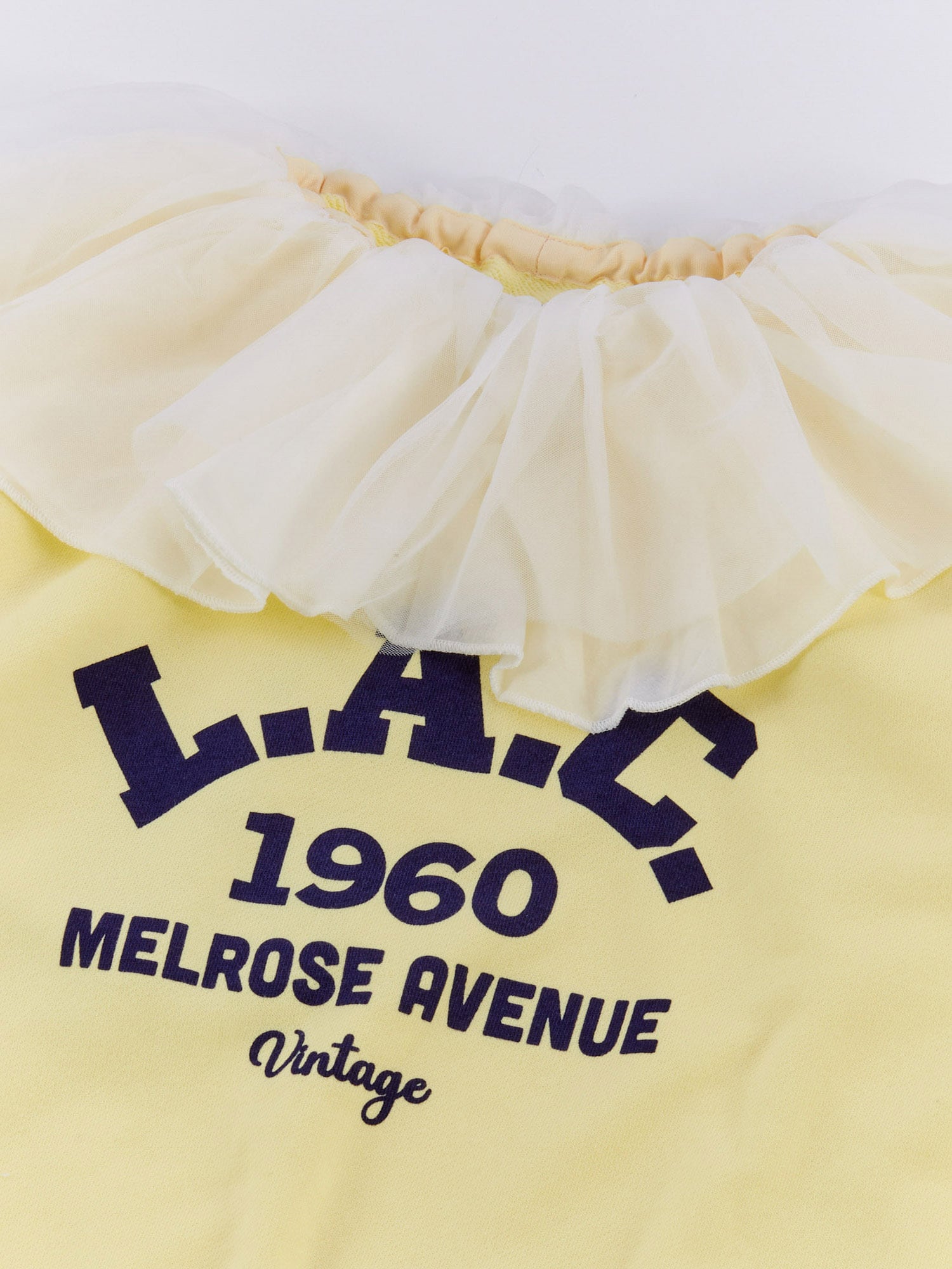 ・カジュアルなスウェットにボリュームたっぷりのチュール衿が可愛い♪