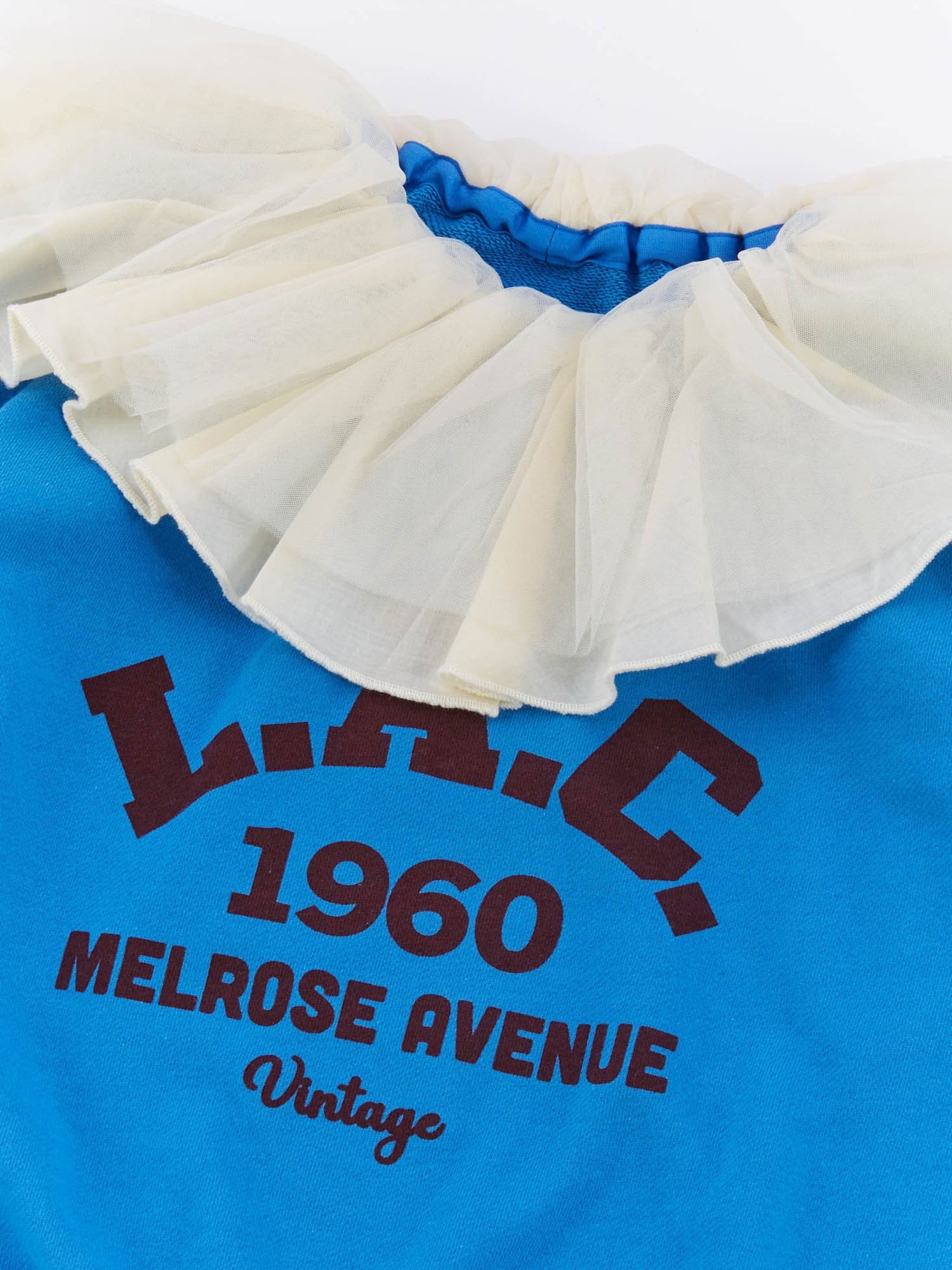 ・カジュアルなスウェットにボリュームたっぷりのチュール衿が可愛い♪
