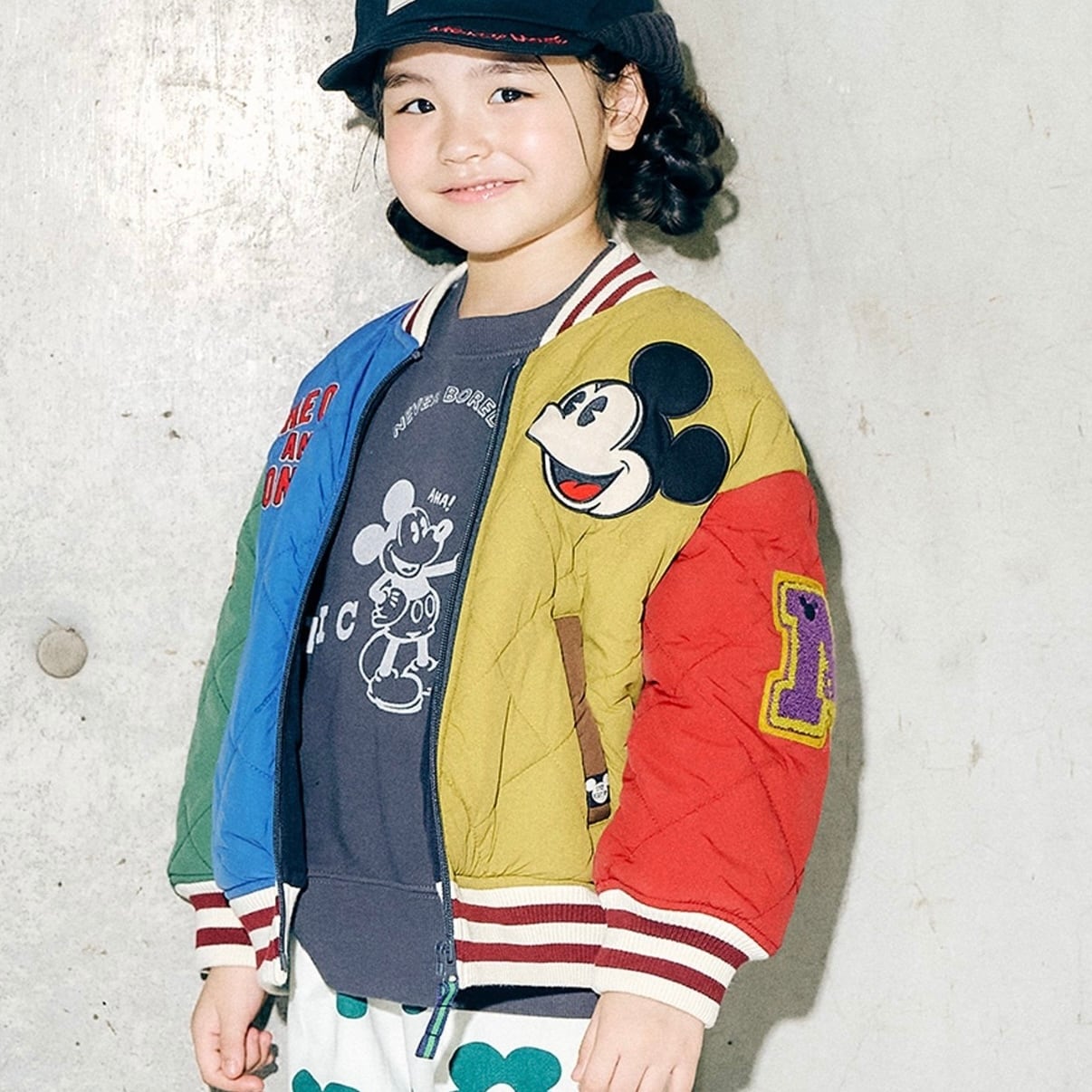 ディズニーキャラクターのワッペンデザインが目を惹くキルティングアウター