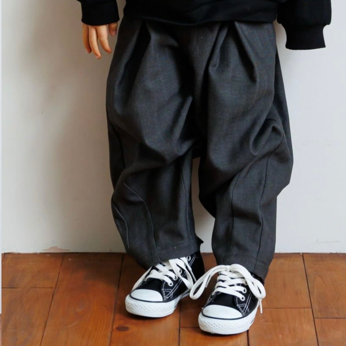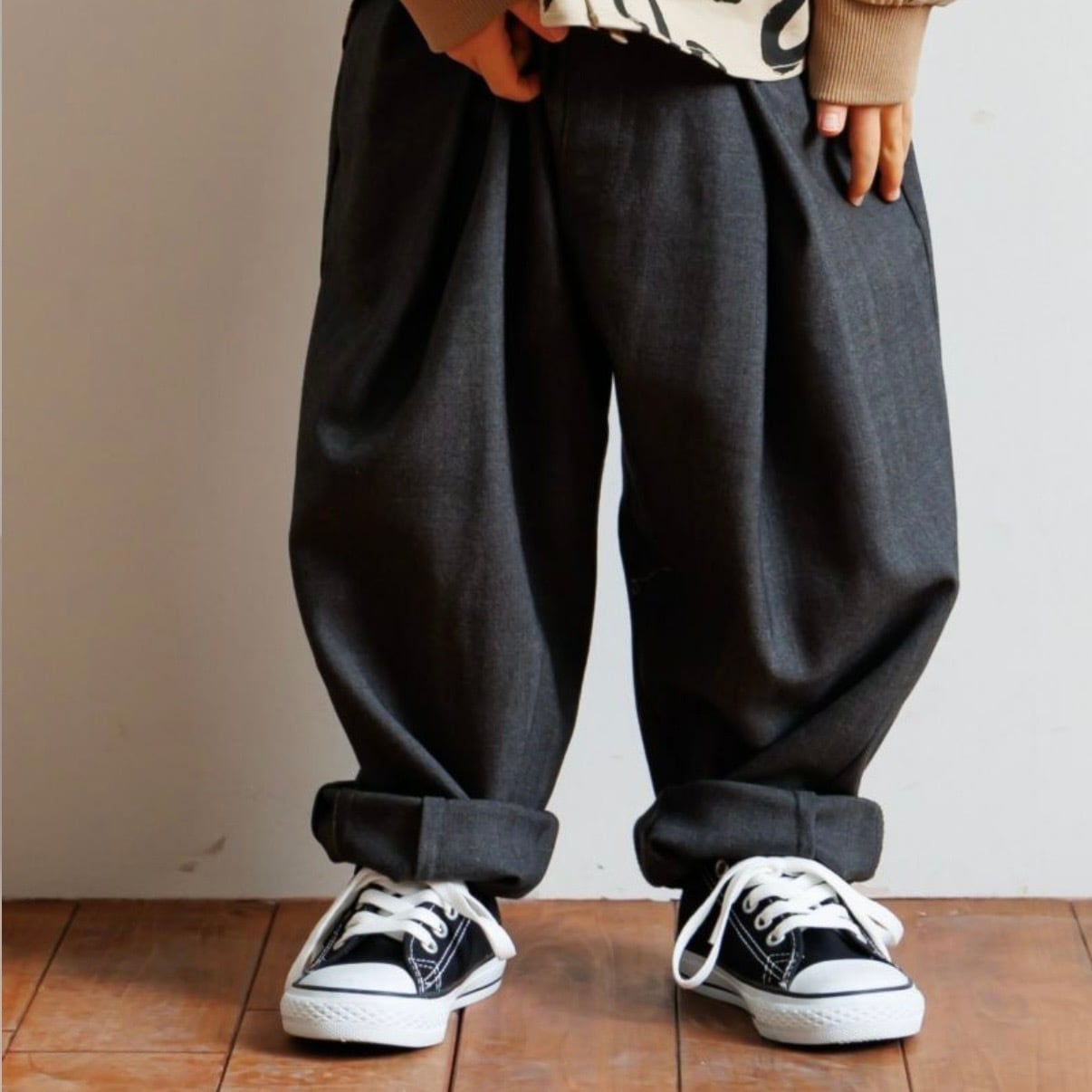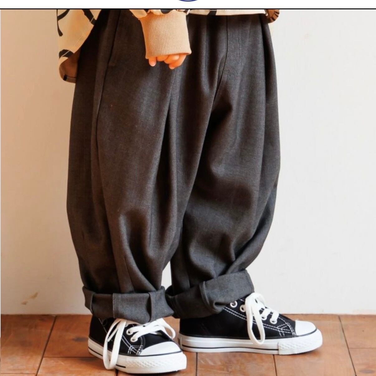 ぽったりとしたまるいシルエットがとてもかわいいので、どんなトップスに合わせてもおしゃれにコーデになる便利なパンツです!