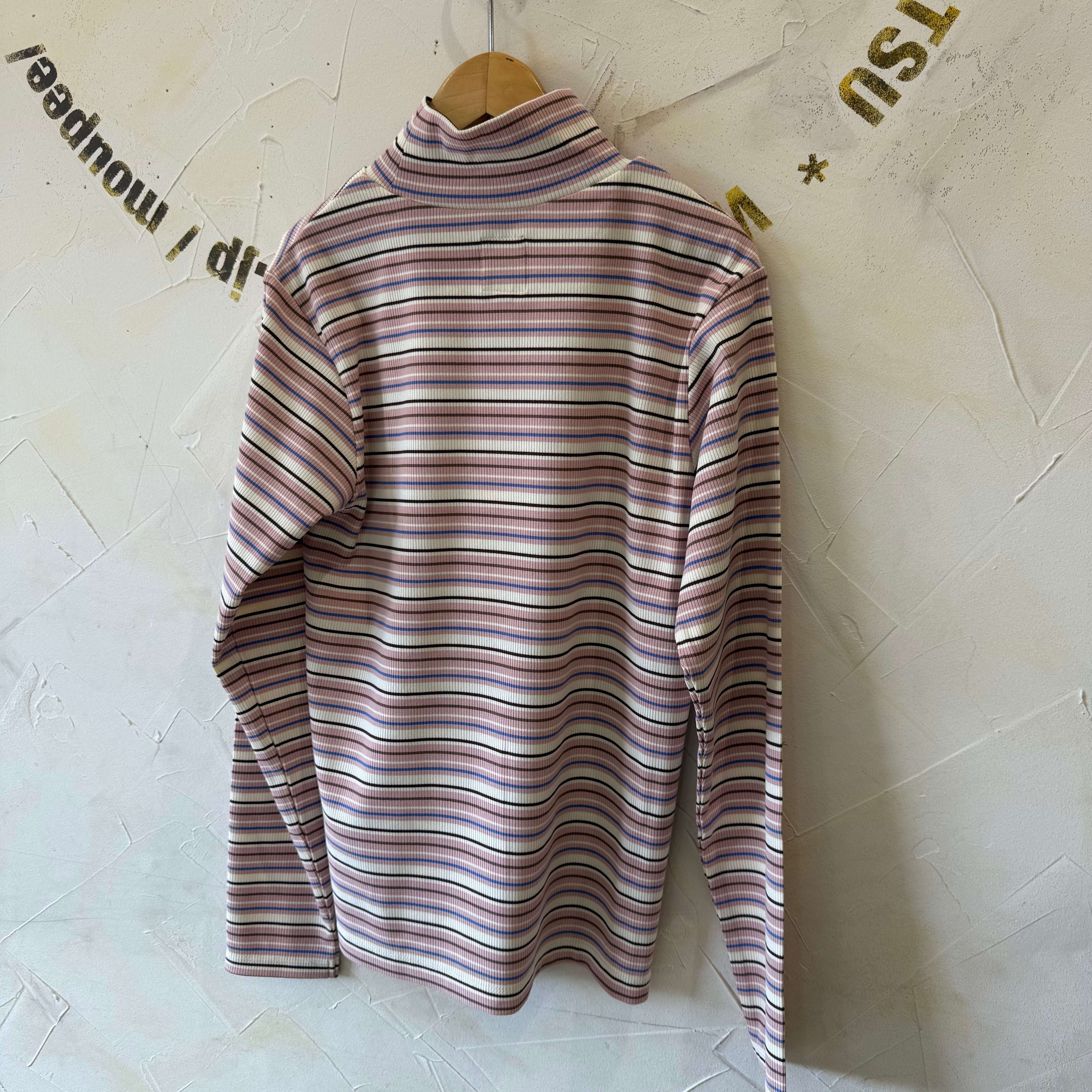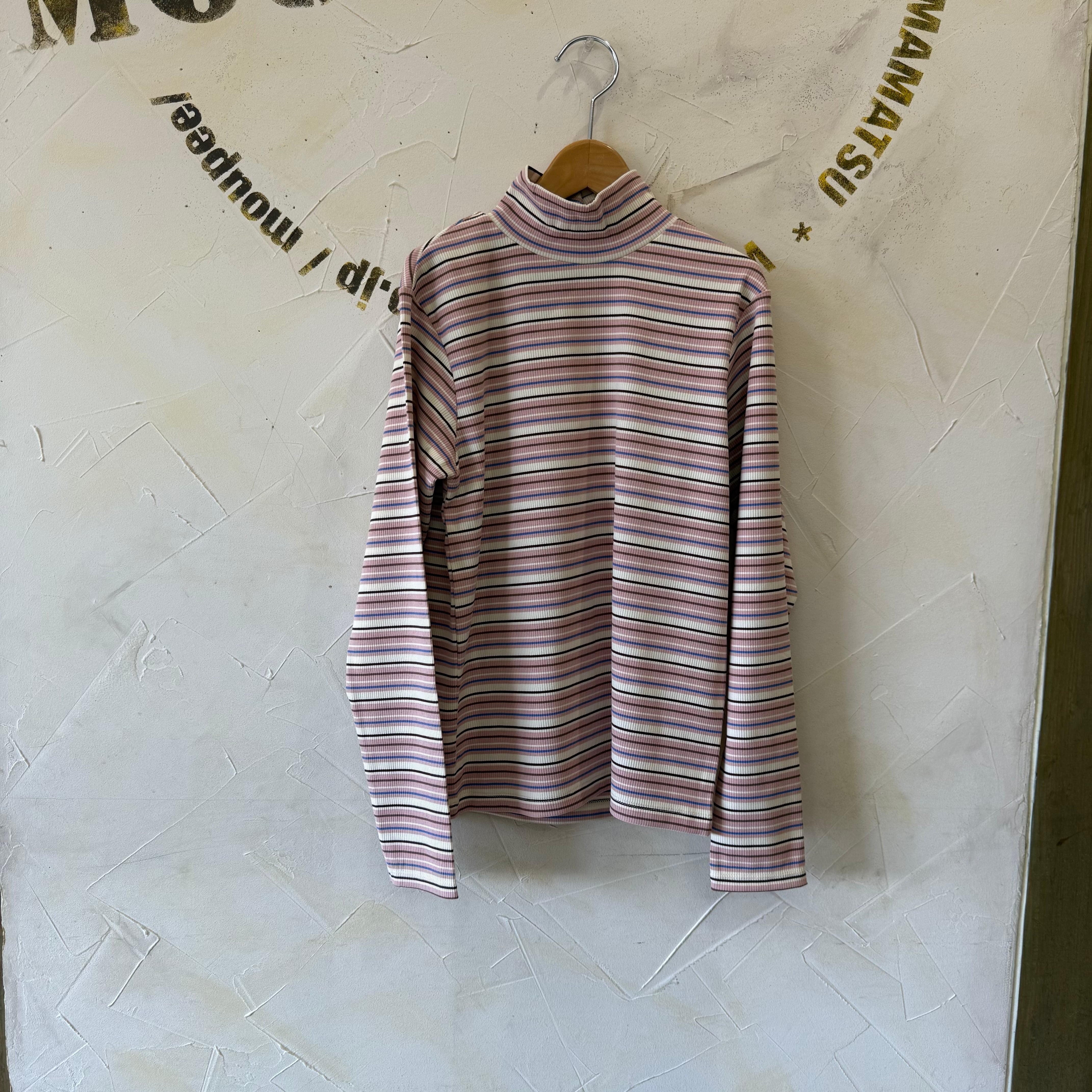 レトロムード漂うカラーリングのボーダーが目を引く、タートルネックTシャツ