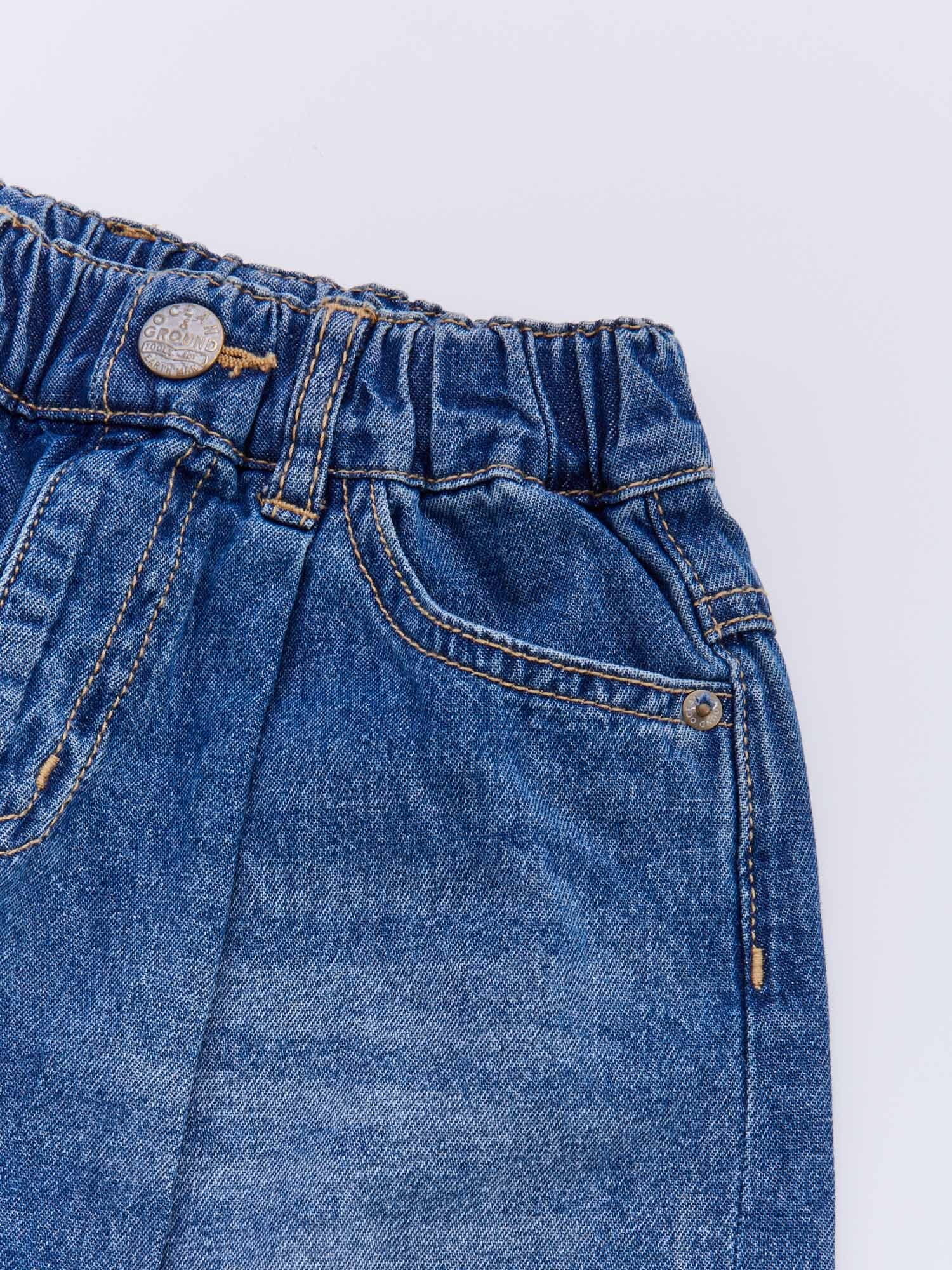 丸みのあるシルエットが可愛い、テーパードデニムパンツ