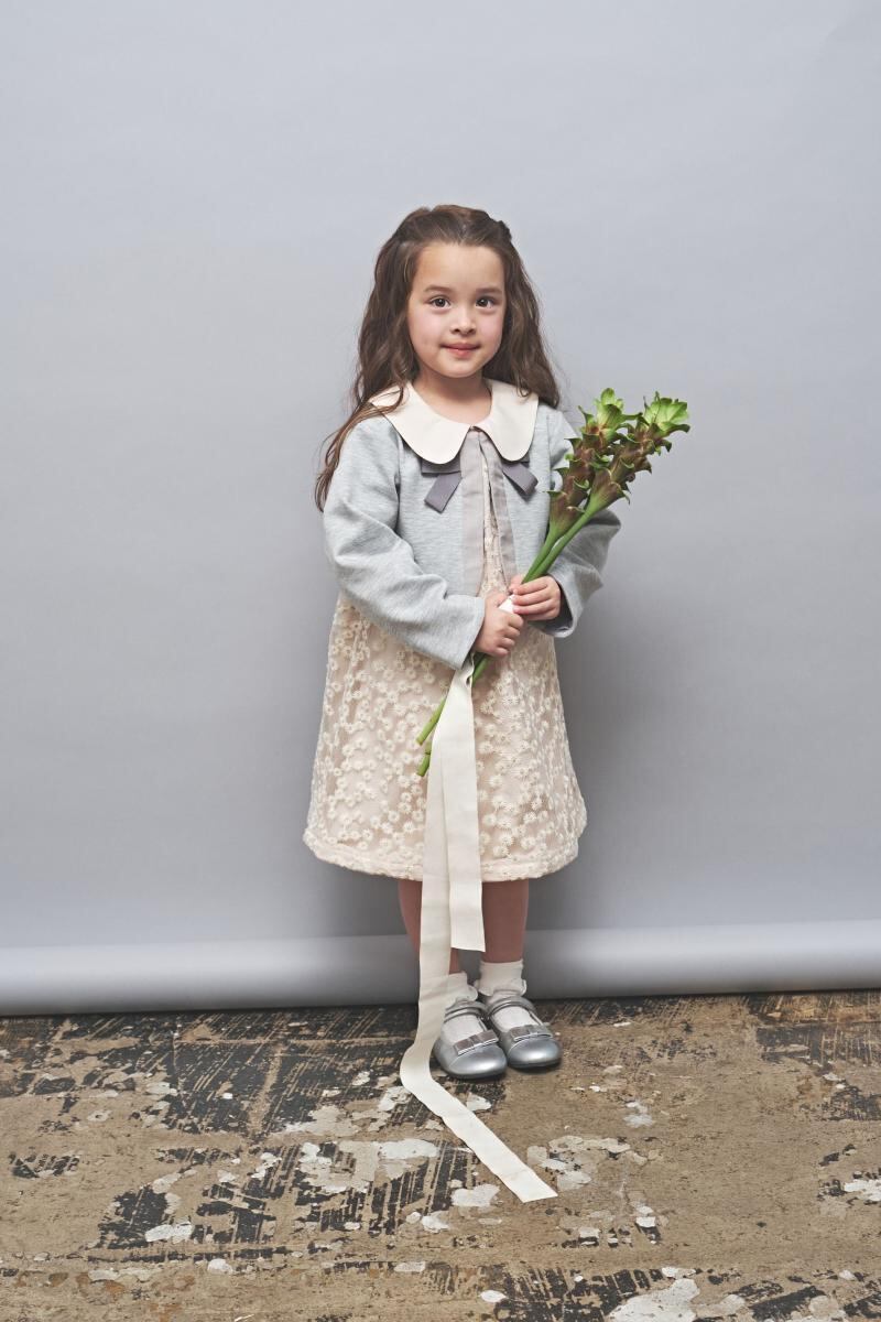 丸襟やAラインシルエット、淡いベージュ調の色合いで、シンプルながらも上品さを醸し出すワンピースは、フォーマルシーンにもぴったりです。