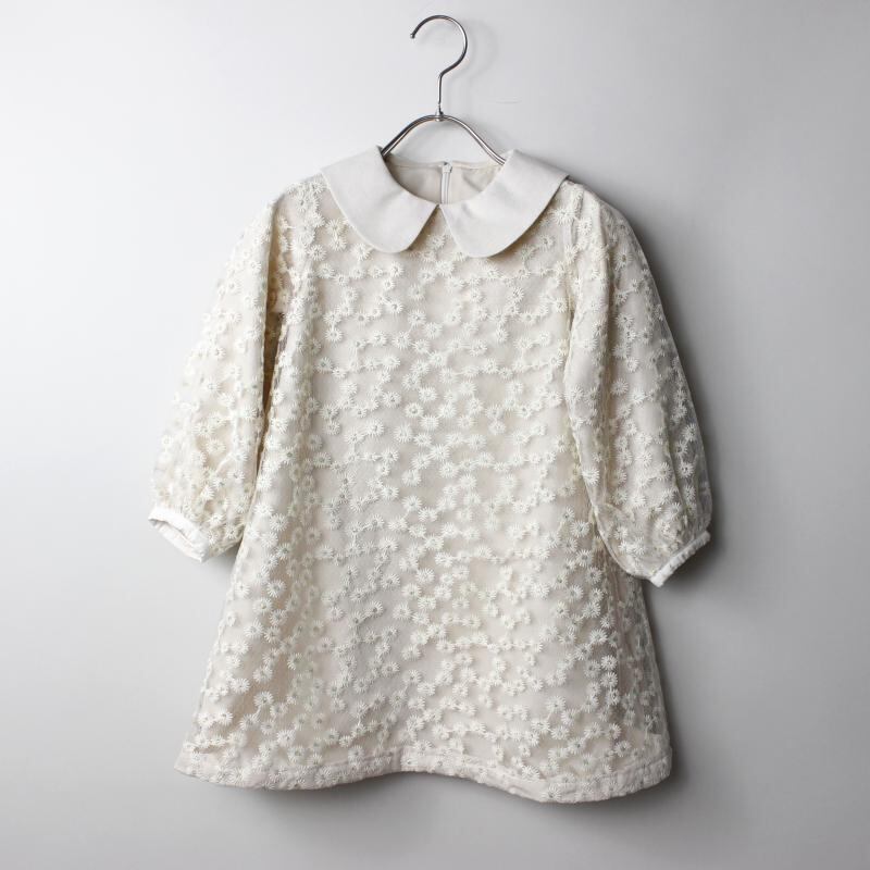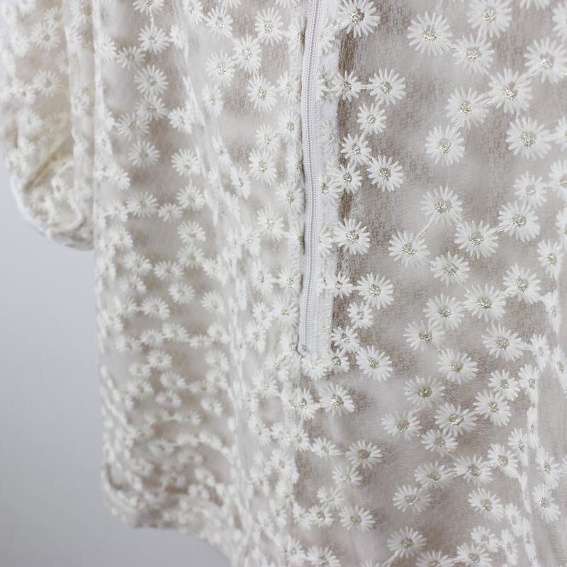 繊細で立体感のある花柄の刺繍が施されたオーガンジー素材を使用し、軽やかで透け感のある生地感が特徴的です。