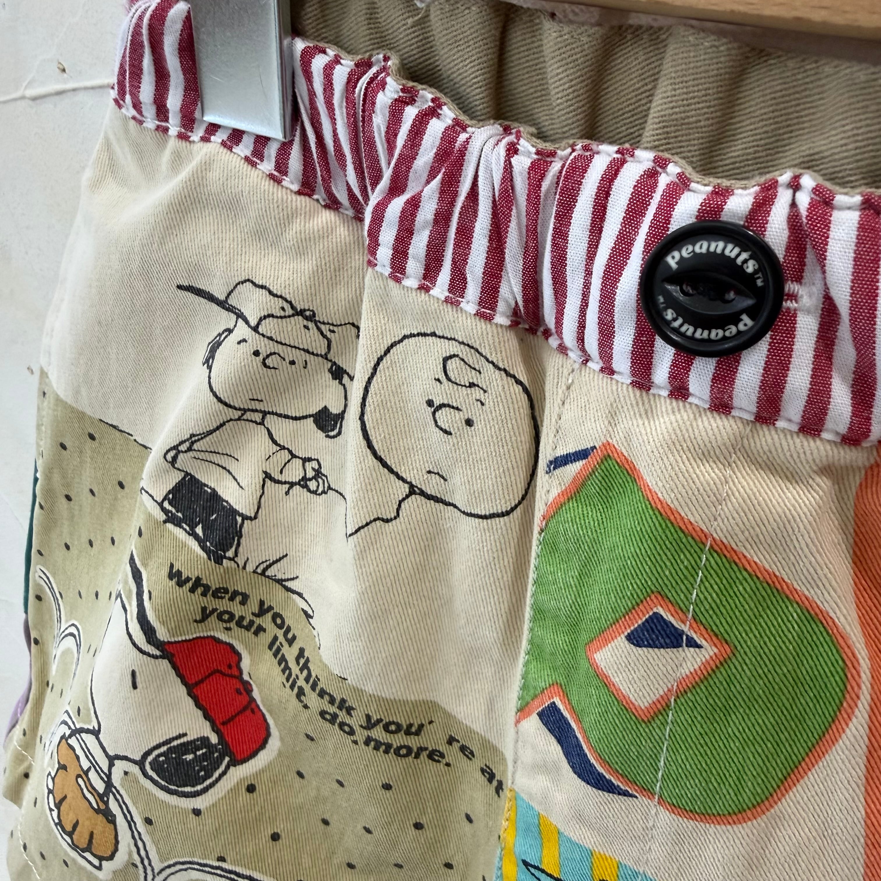 PEANUTSの仲間たちが散りばめられたパッチワークデザインが