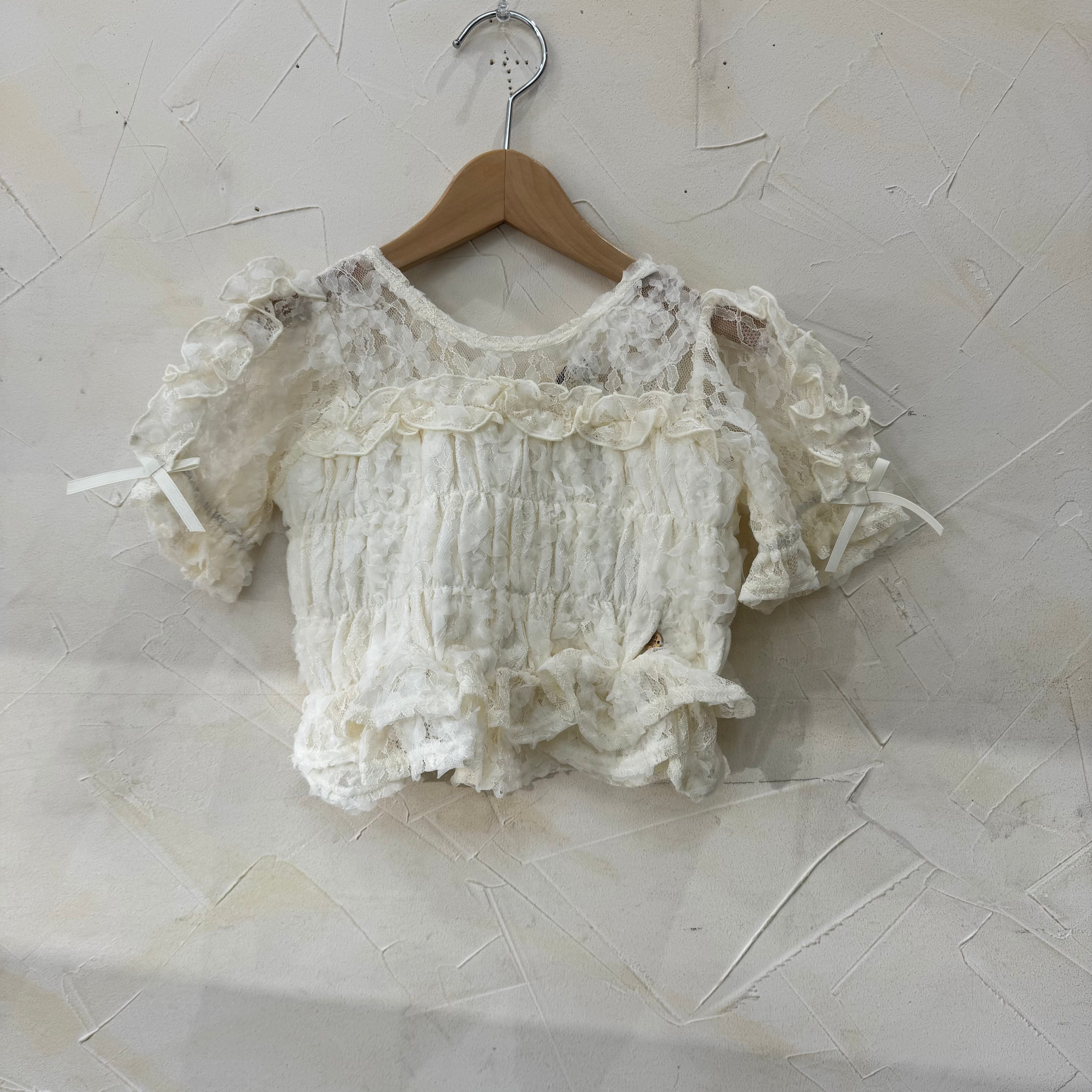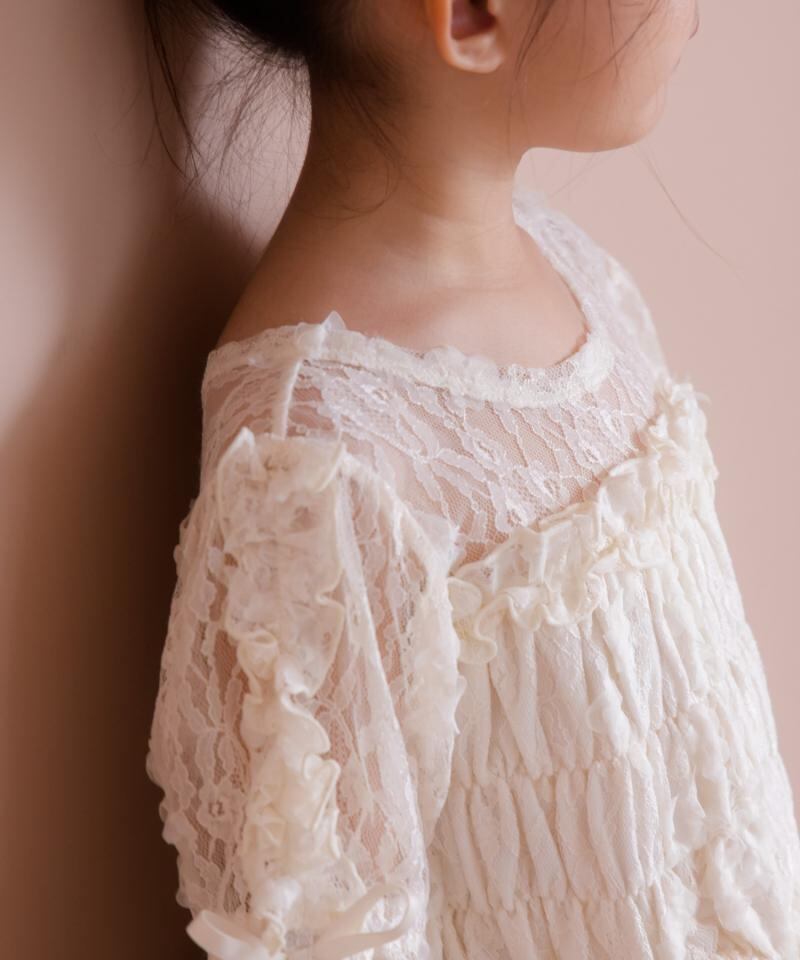 レースがとてもキュートな短め丈デザインのTシャツです。