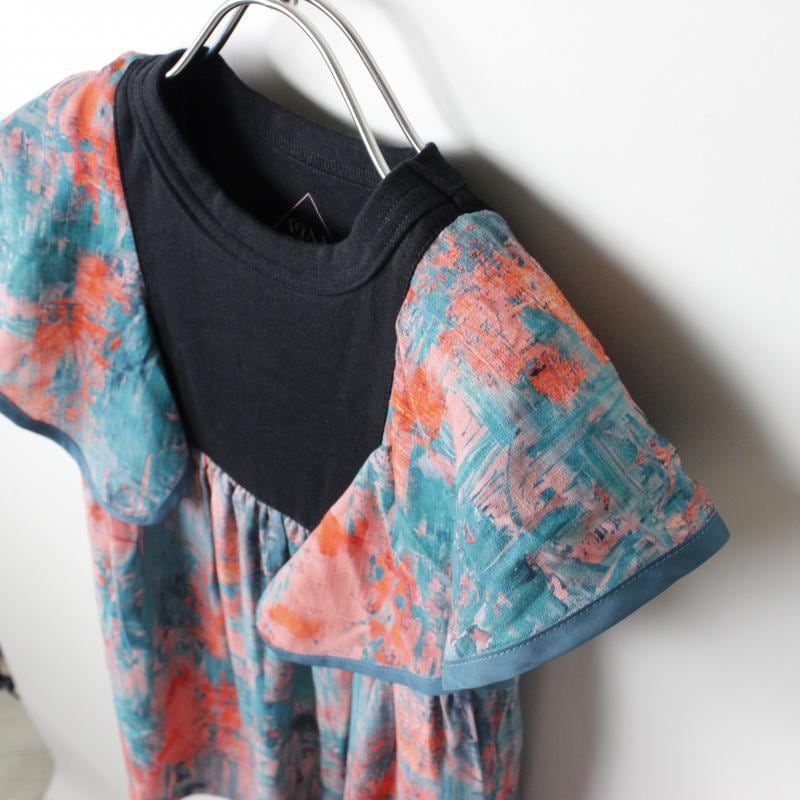 アブストラクト(抽象的な)なアートを感じさせる、視覚的な遊び心を感じさせる抽象モチーフのプリントがとてもおしゃれな1枚です。