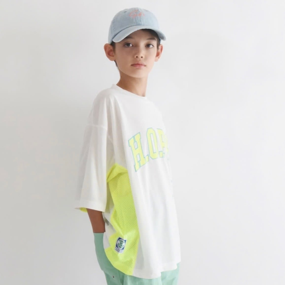 サイドをメッシュで切り替えスポーティに仕上げた1着。