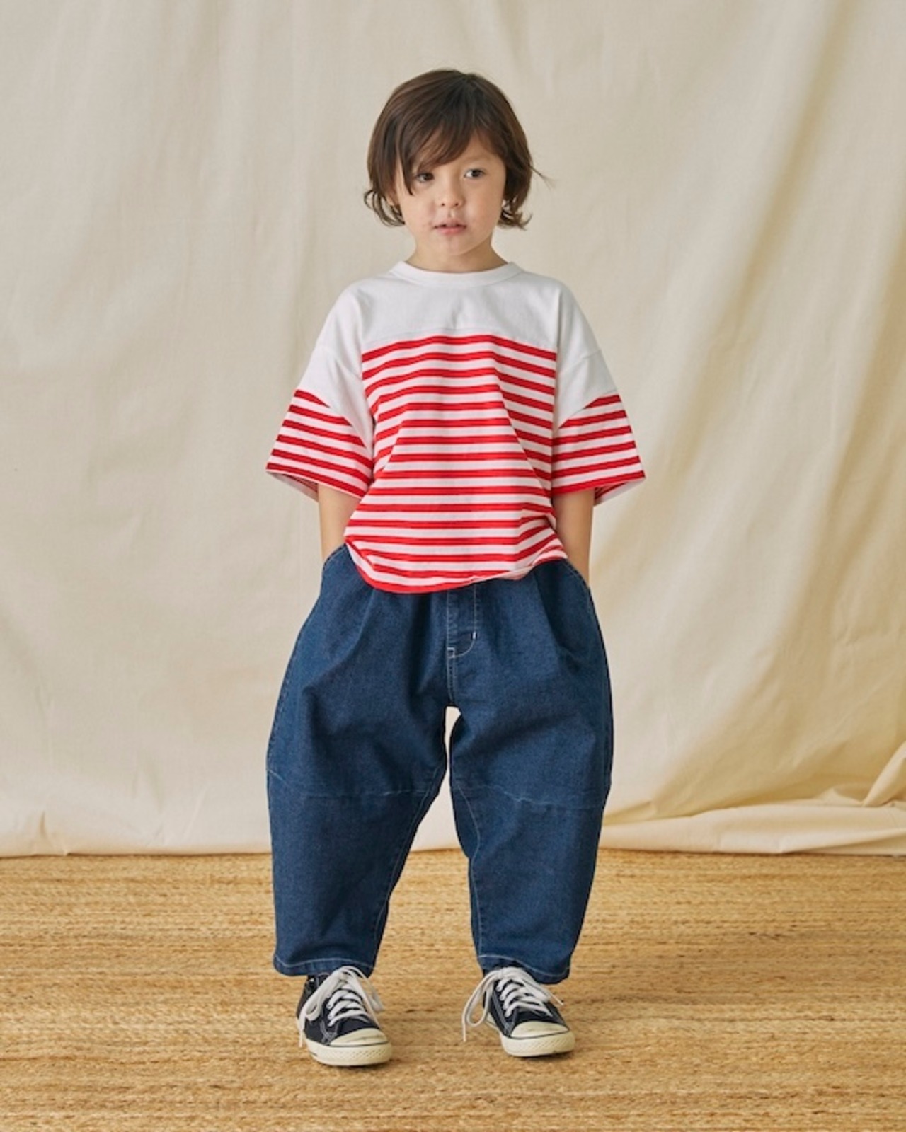 MODEL(ネイビー着用) / 108cm / 17kg / M(110-120)サイズ着用