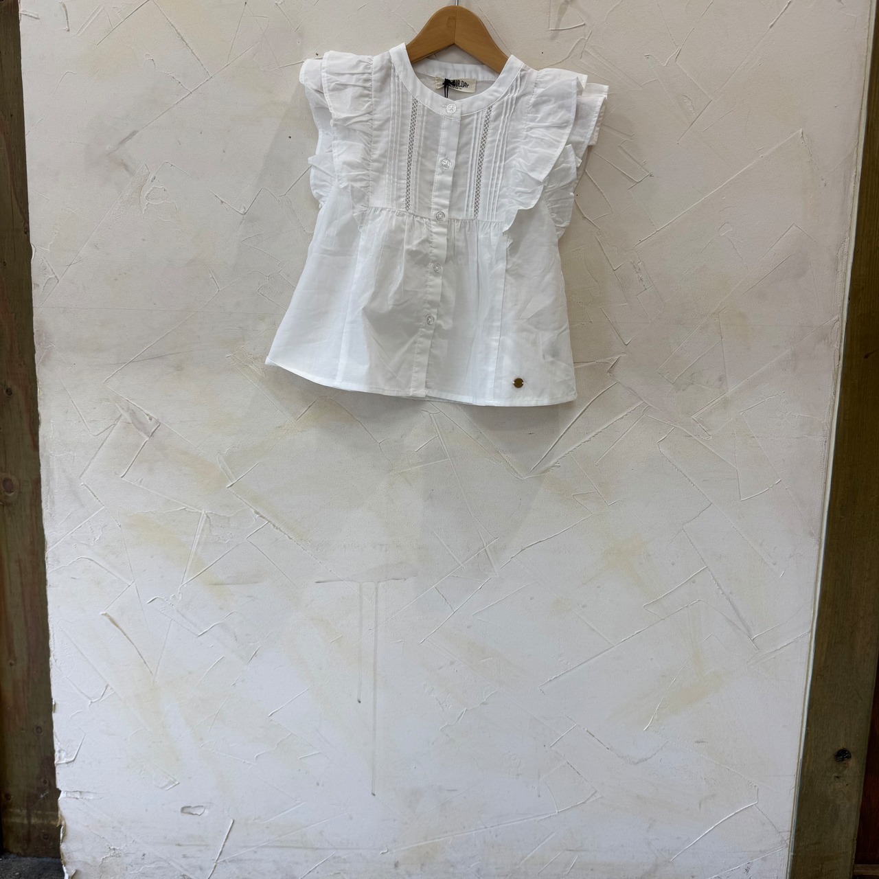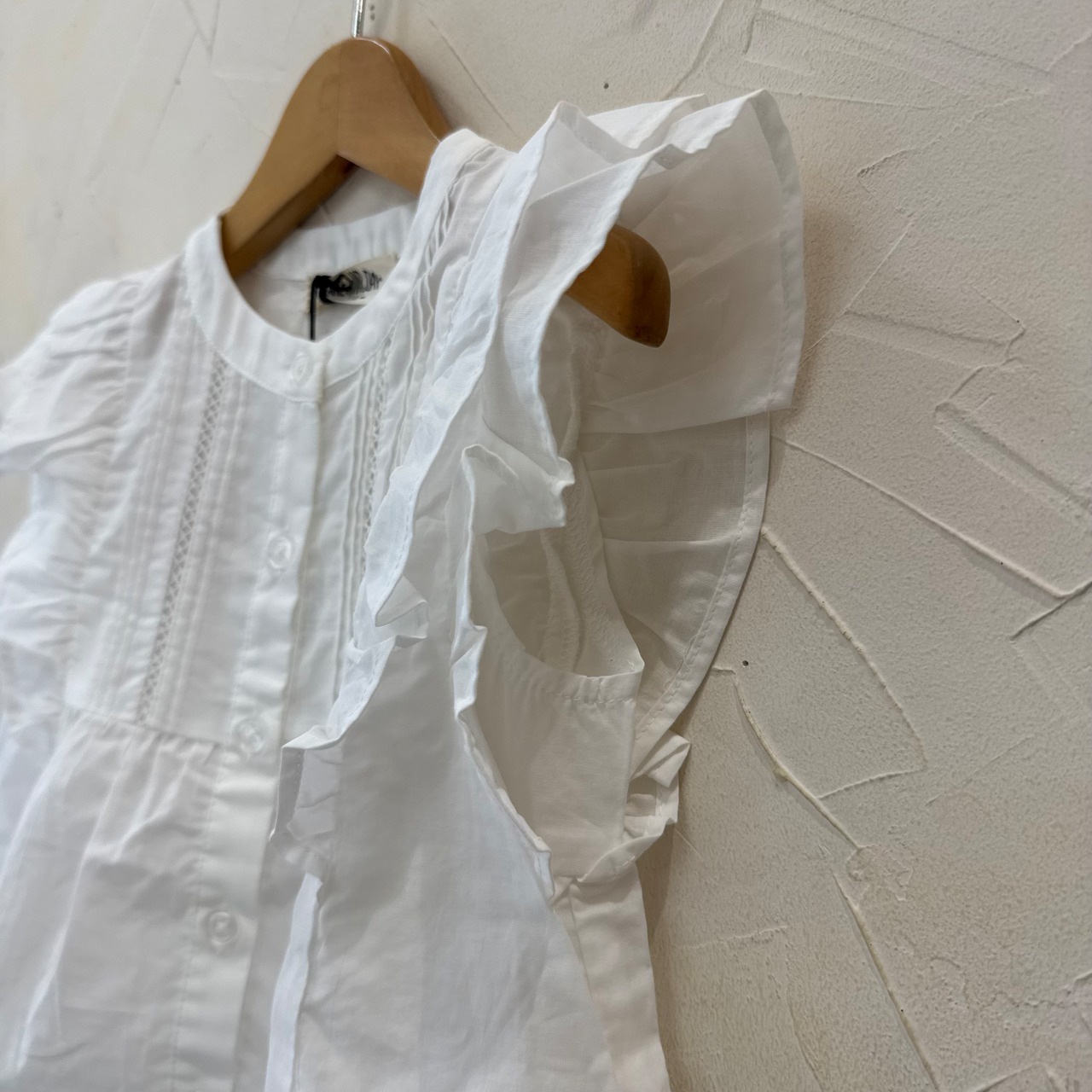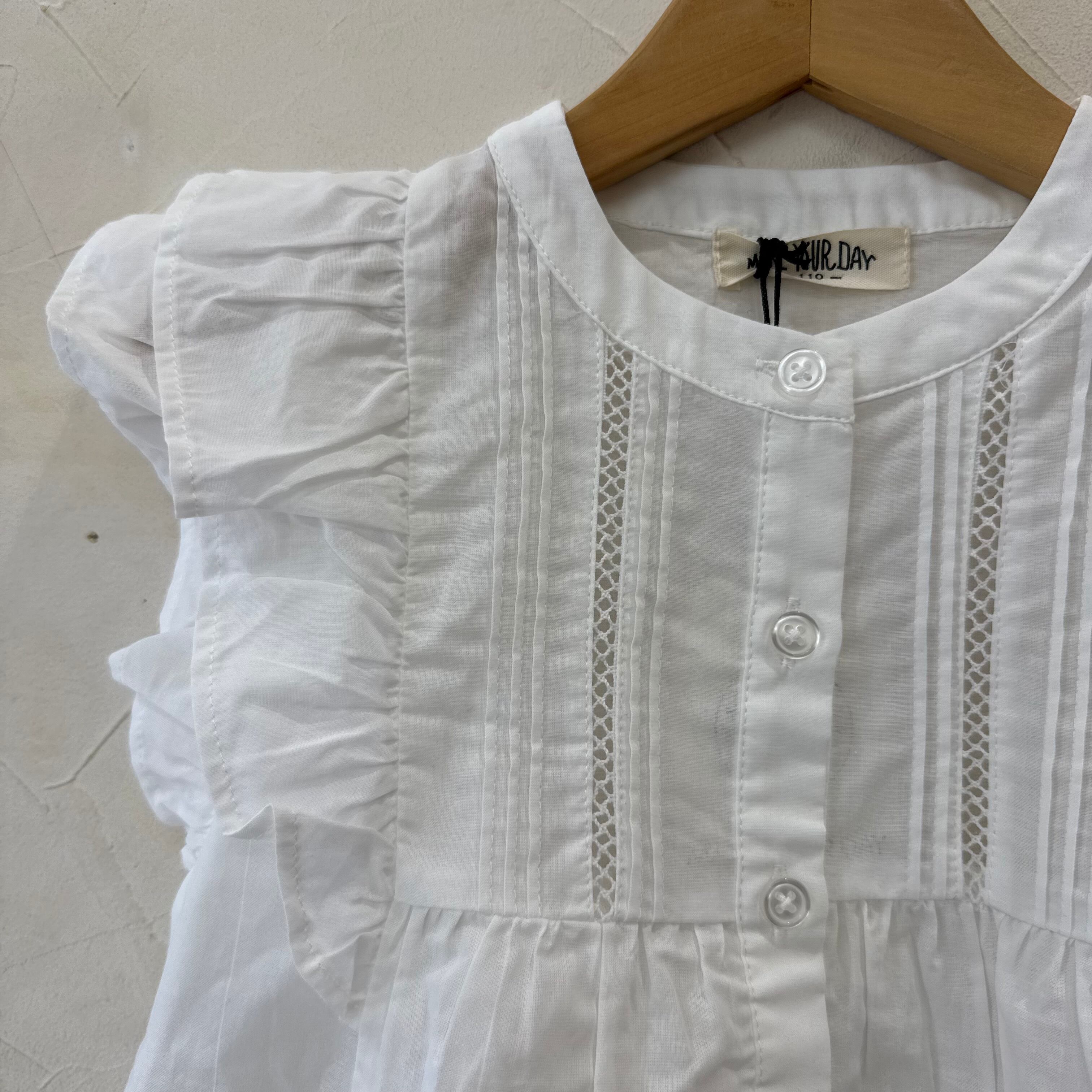 大きなフリルと前の部分の透かし、ピンタック使いがとてもオシャレ!!