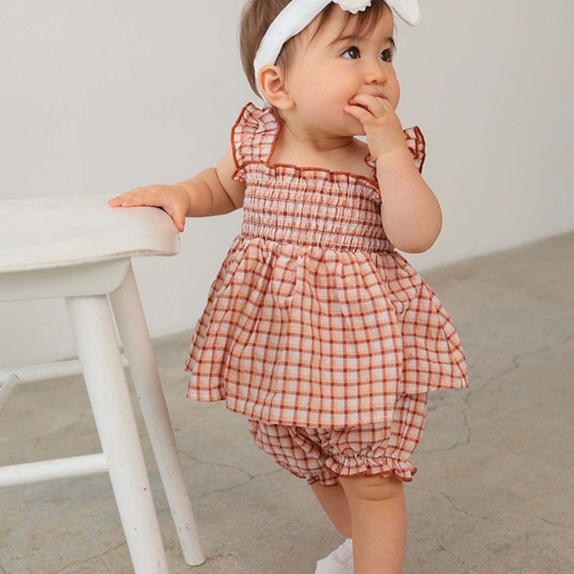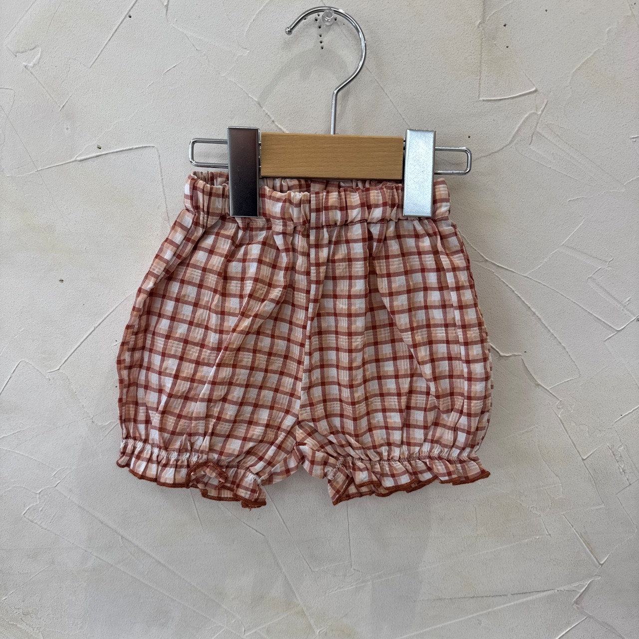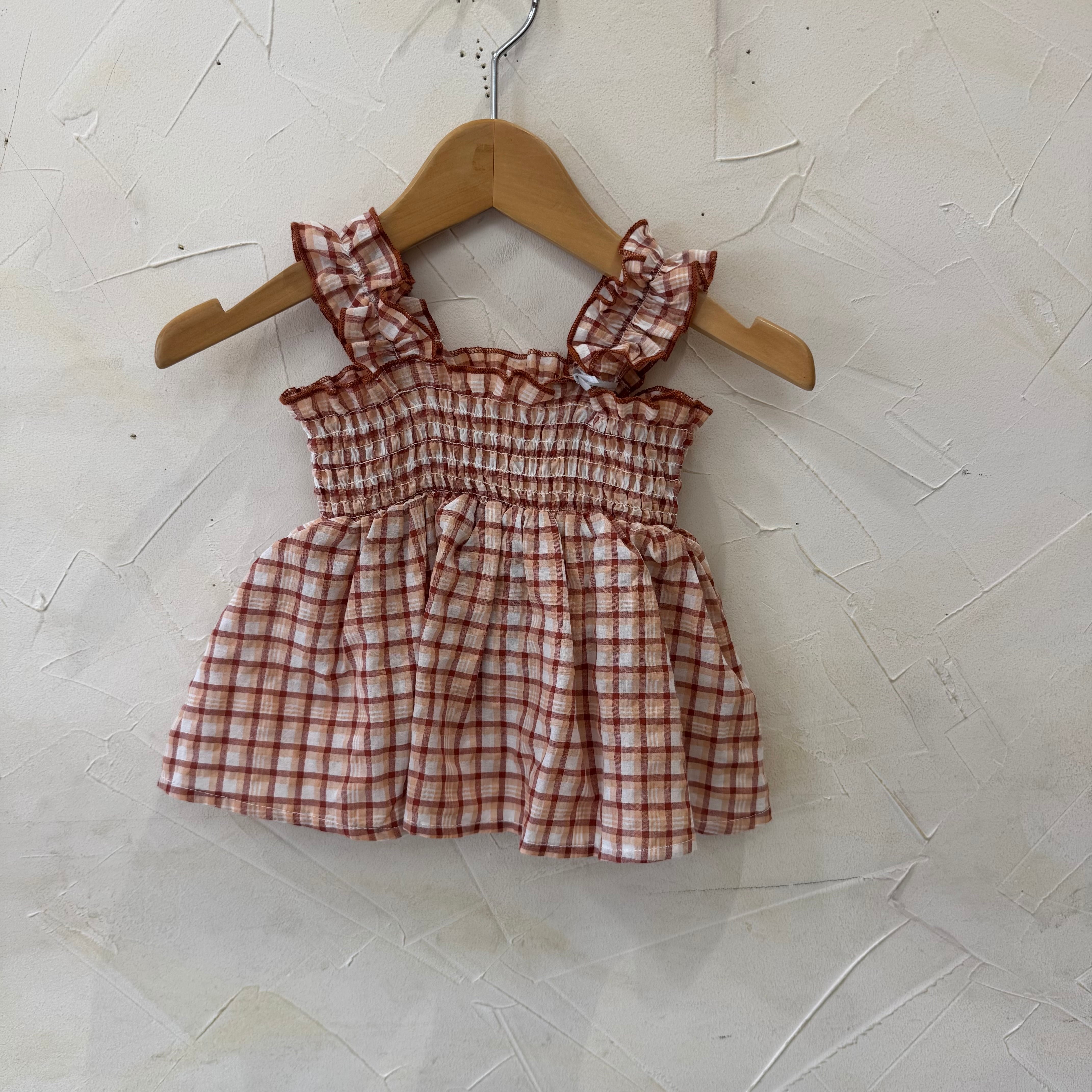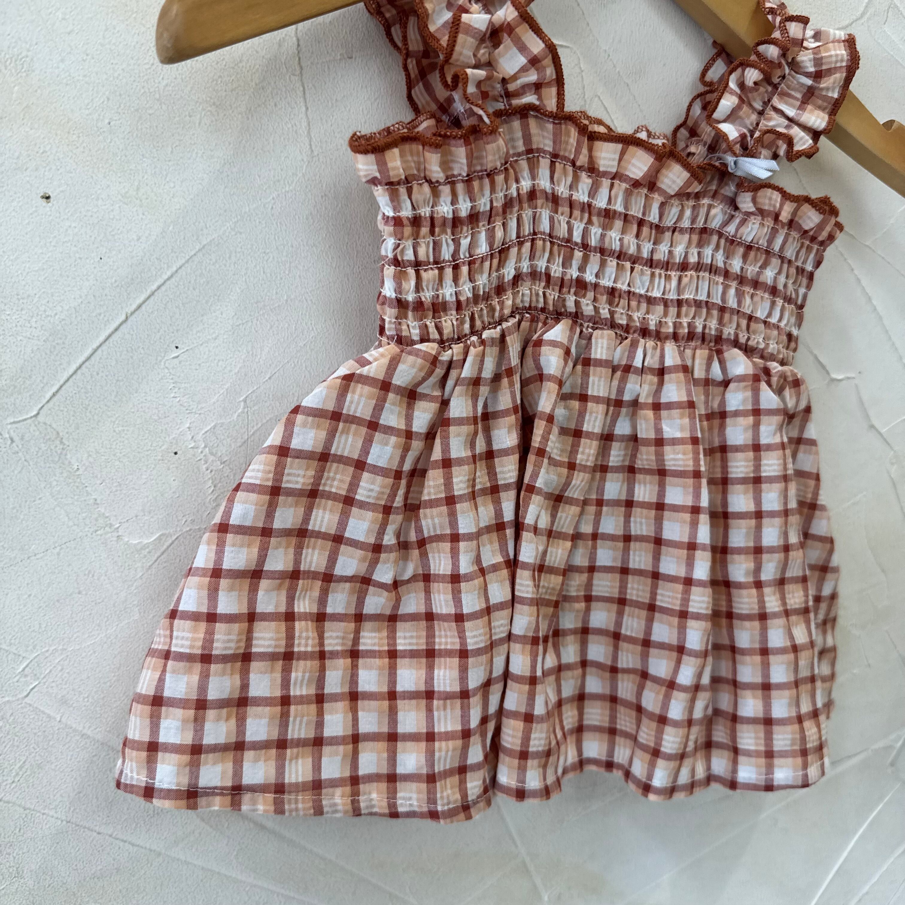 涼しげなチェック生地のチュニックとボトムのセット。