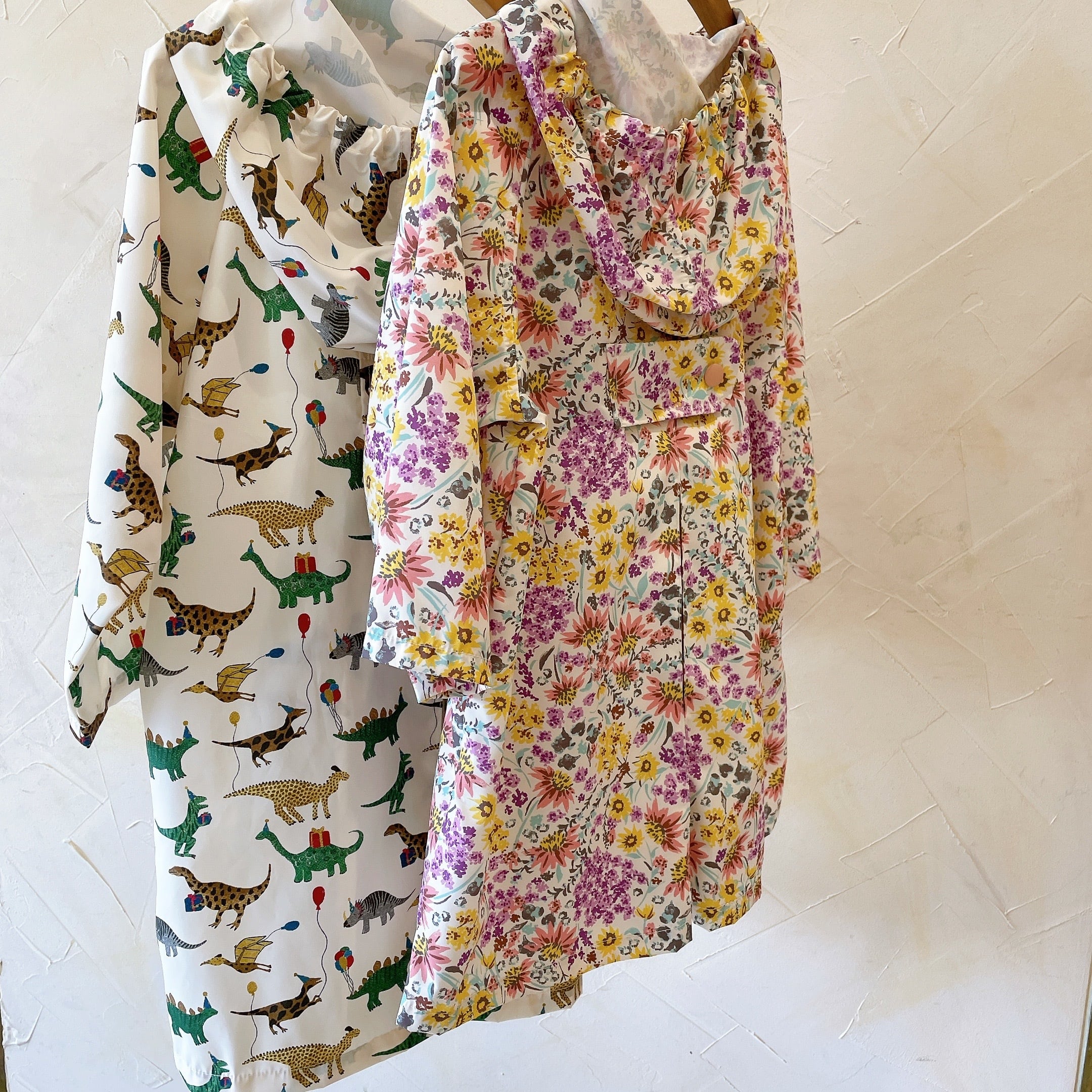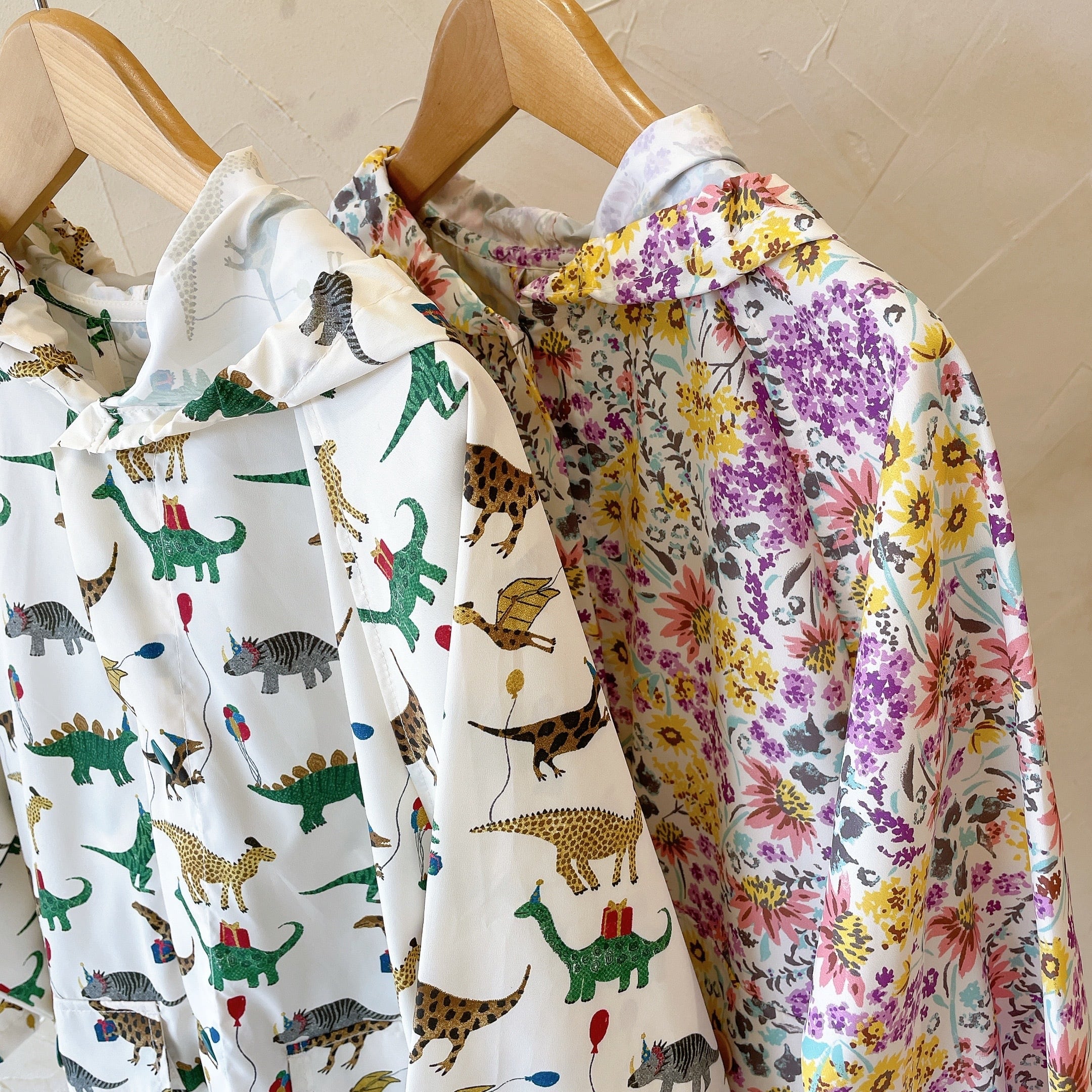 ポップな恐竜柄と花柄が目を惹く総柄デザイン。