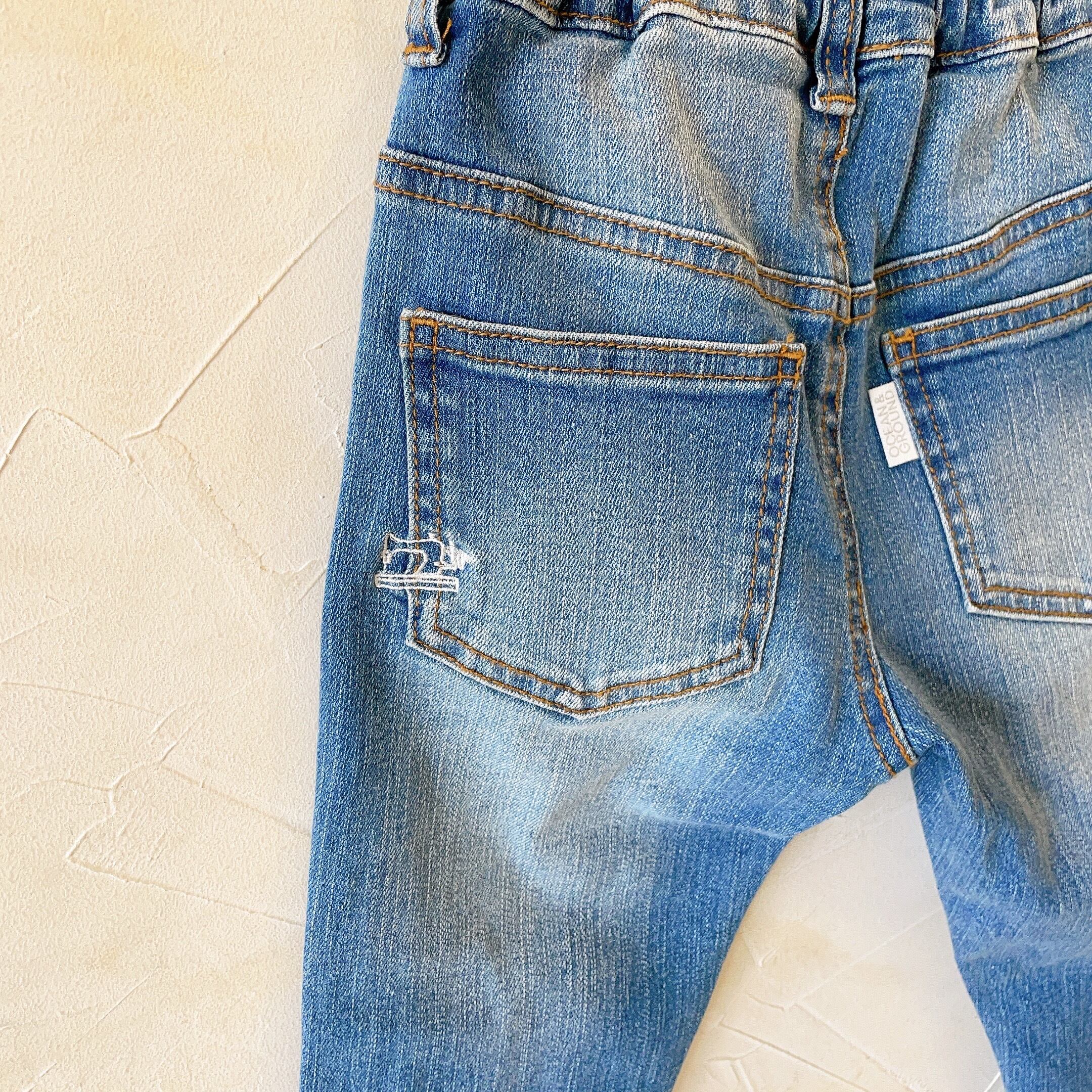 ベーシックで合わせやすい5ポケットデザインのデニムパンツ。