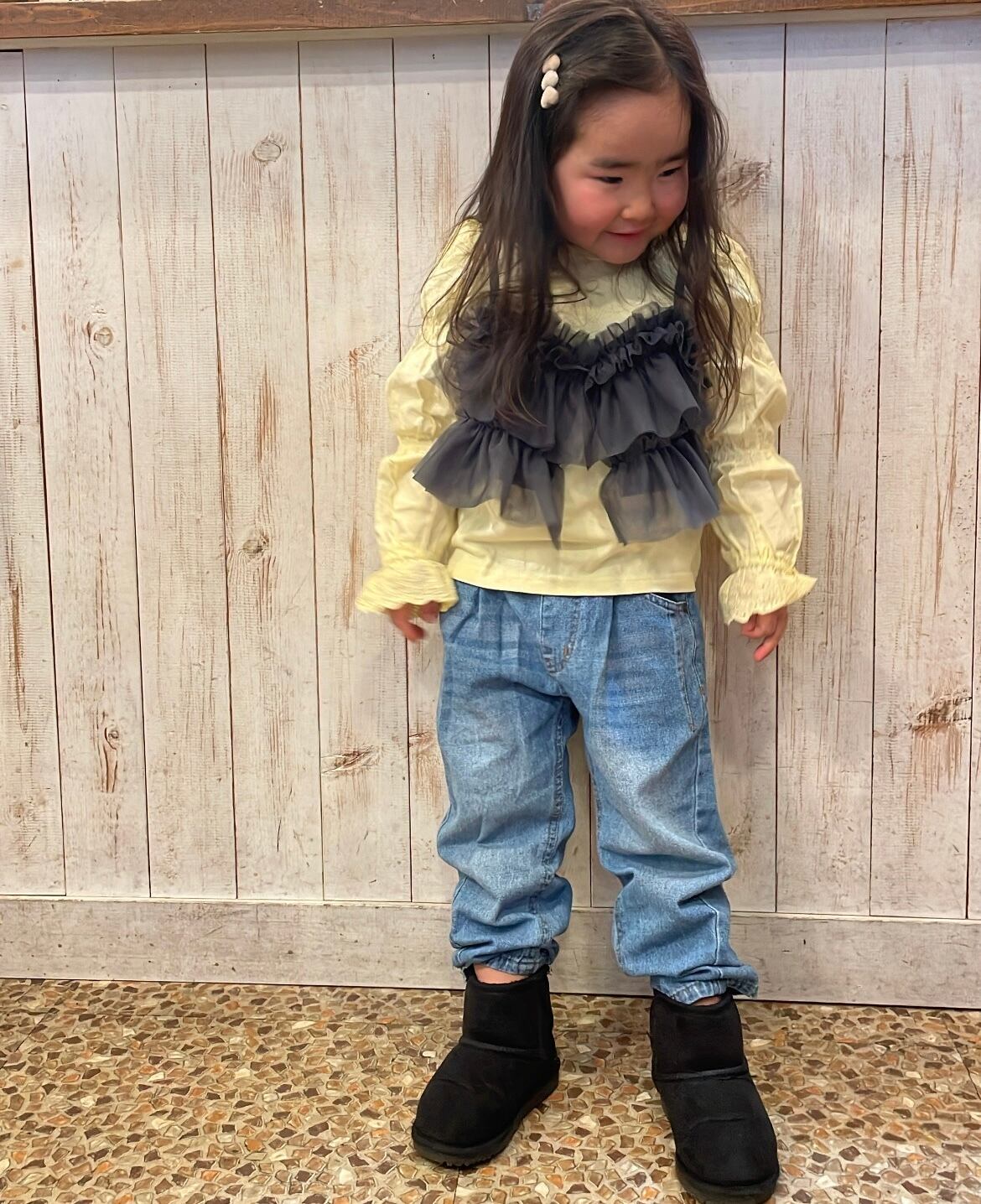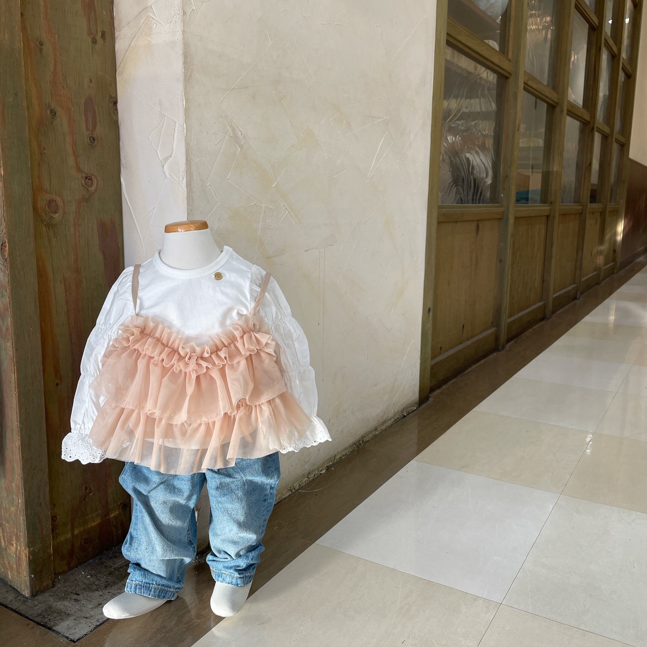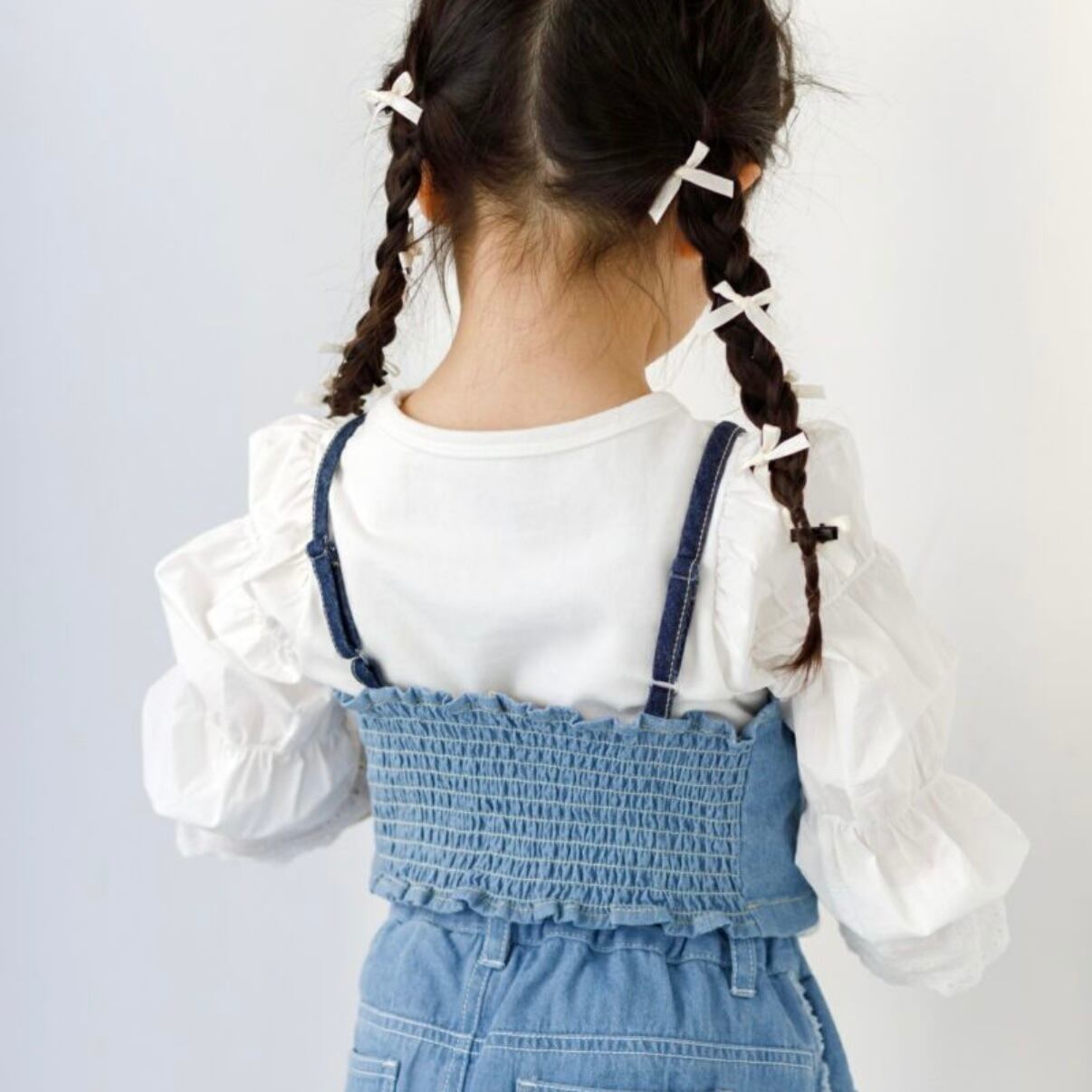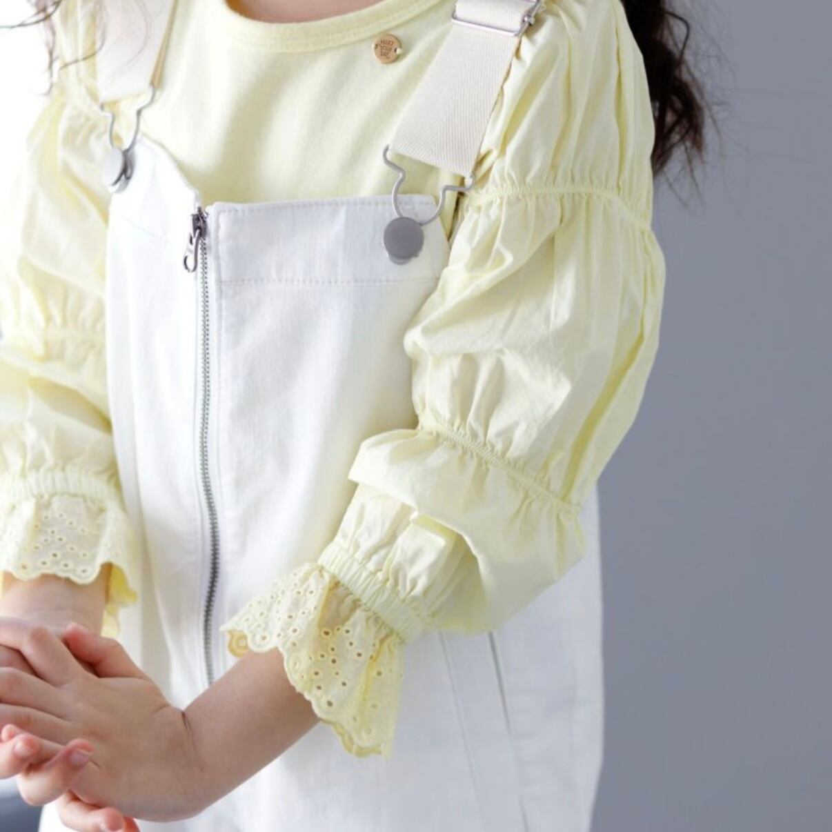 袖にアクセントがあるのでビスチェやオーバーオール、ジャンパースカートとの相性がバツグン◎